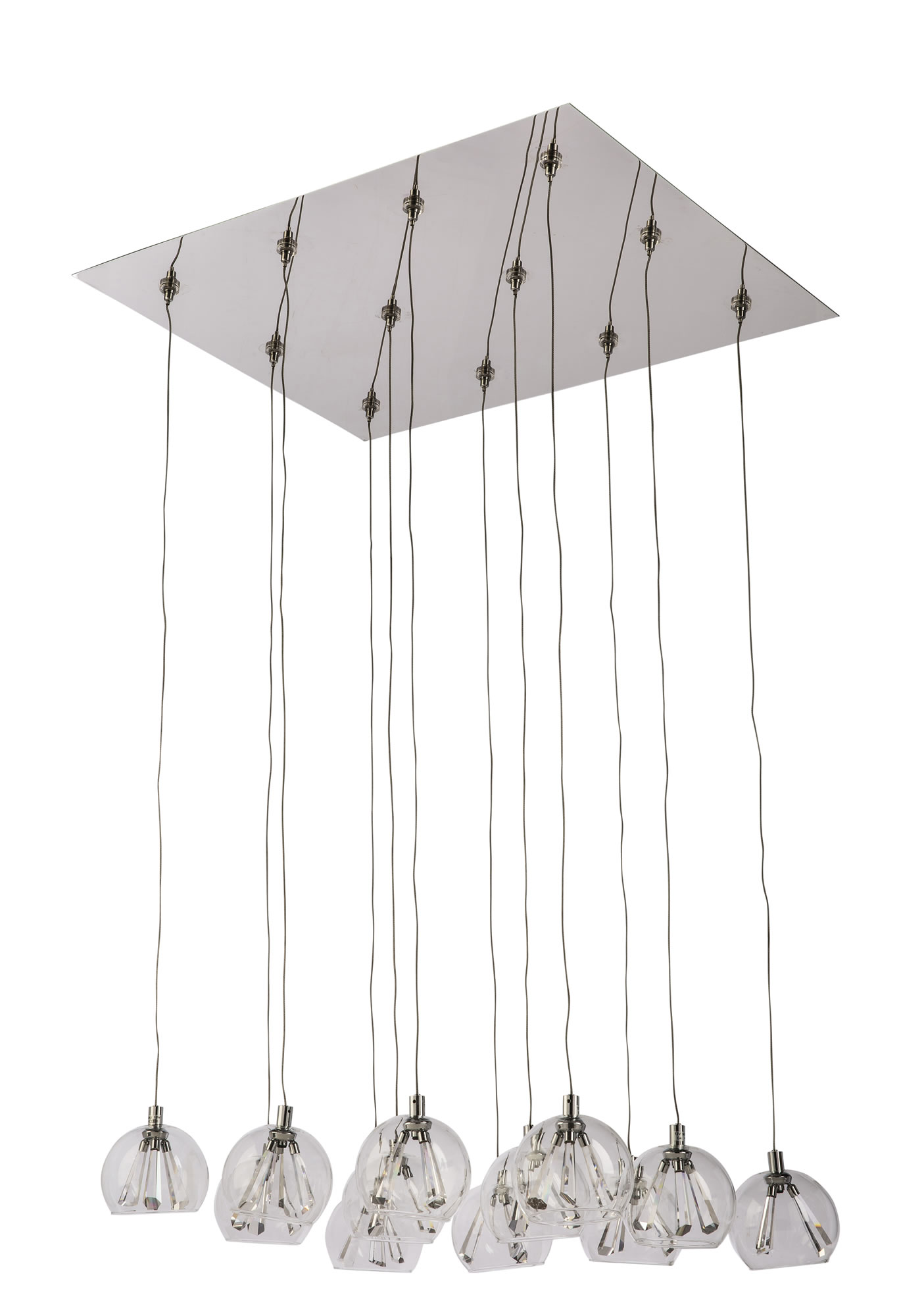 12L 12V crystal rectangle chrome plate pendant clear glass shades
