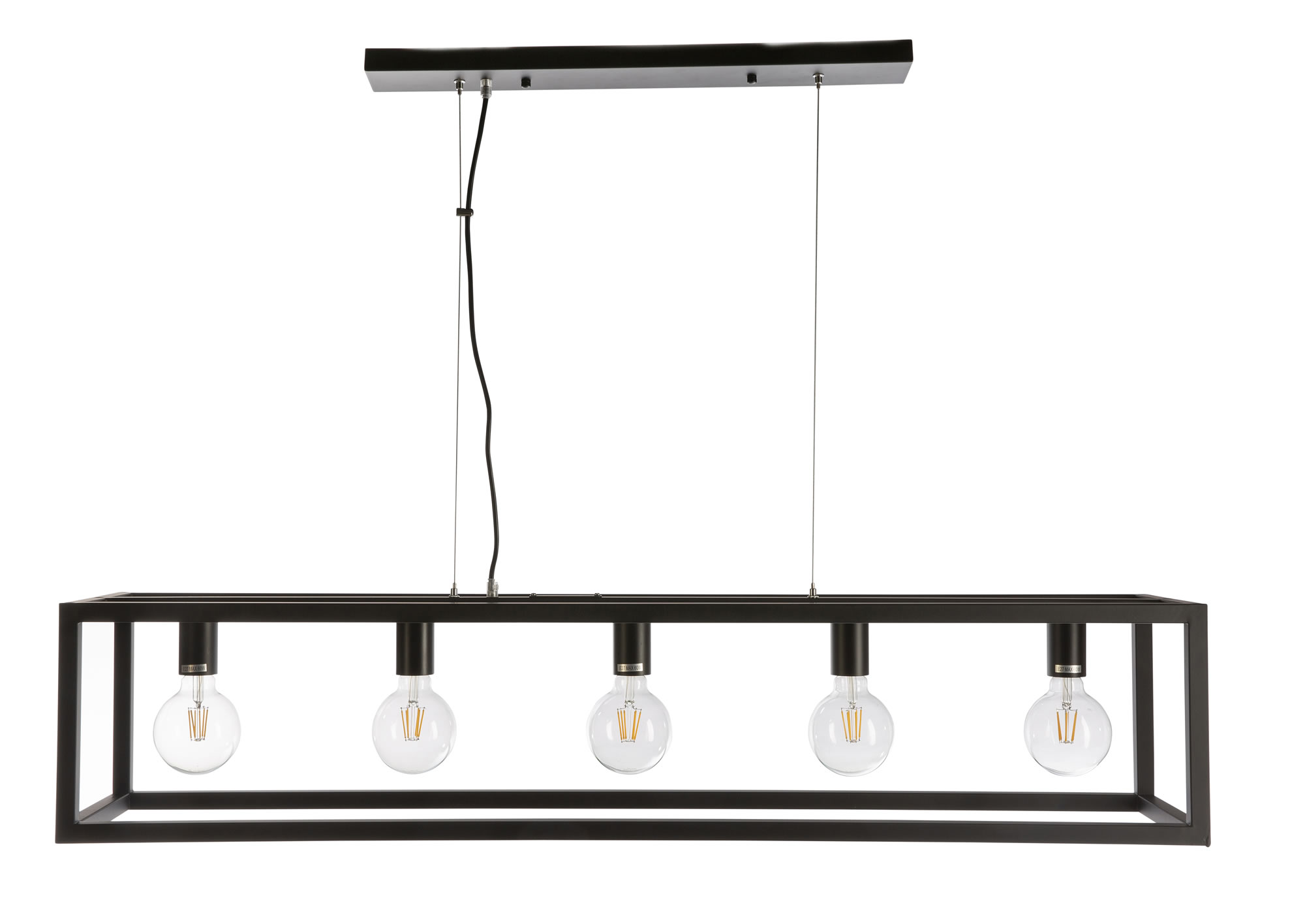 5L Black frame pendant E27 2metre cable exc. globes