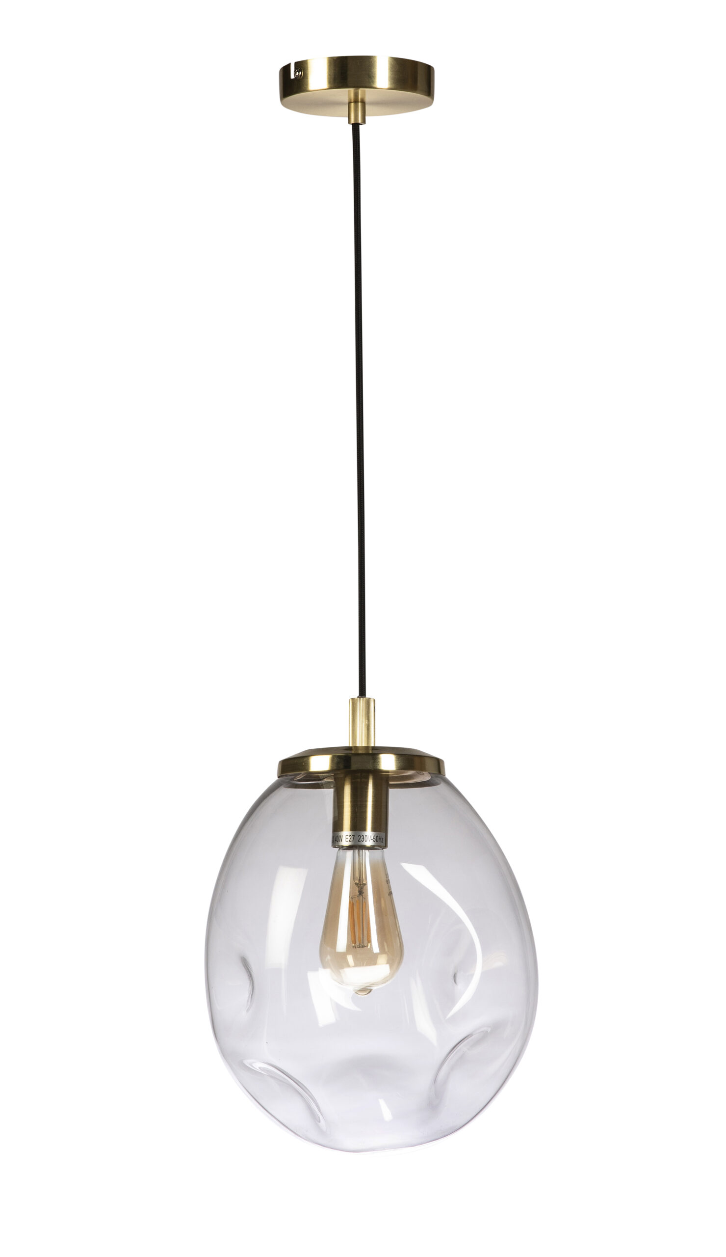 1L clear glass pendant black suspension, gold metalware
