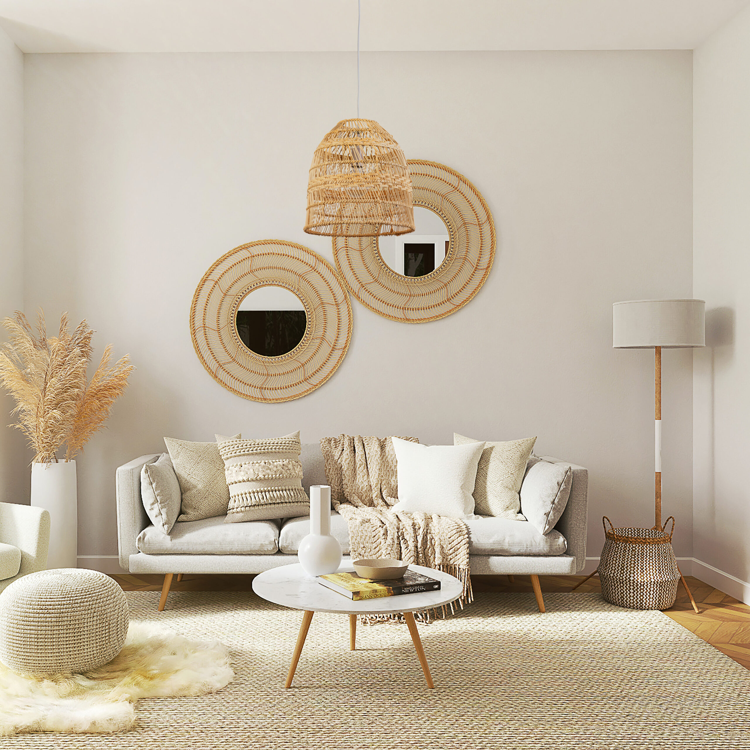 Bohemian Woven Bamboo Basket Pendant
