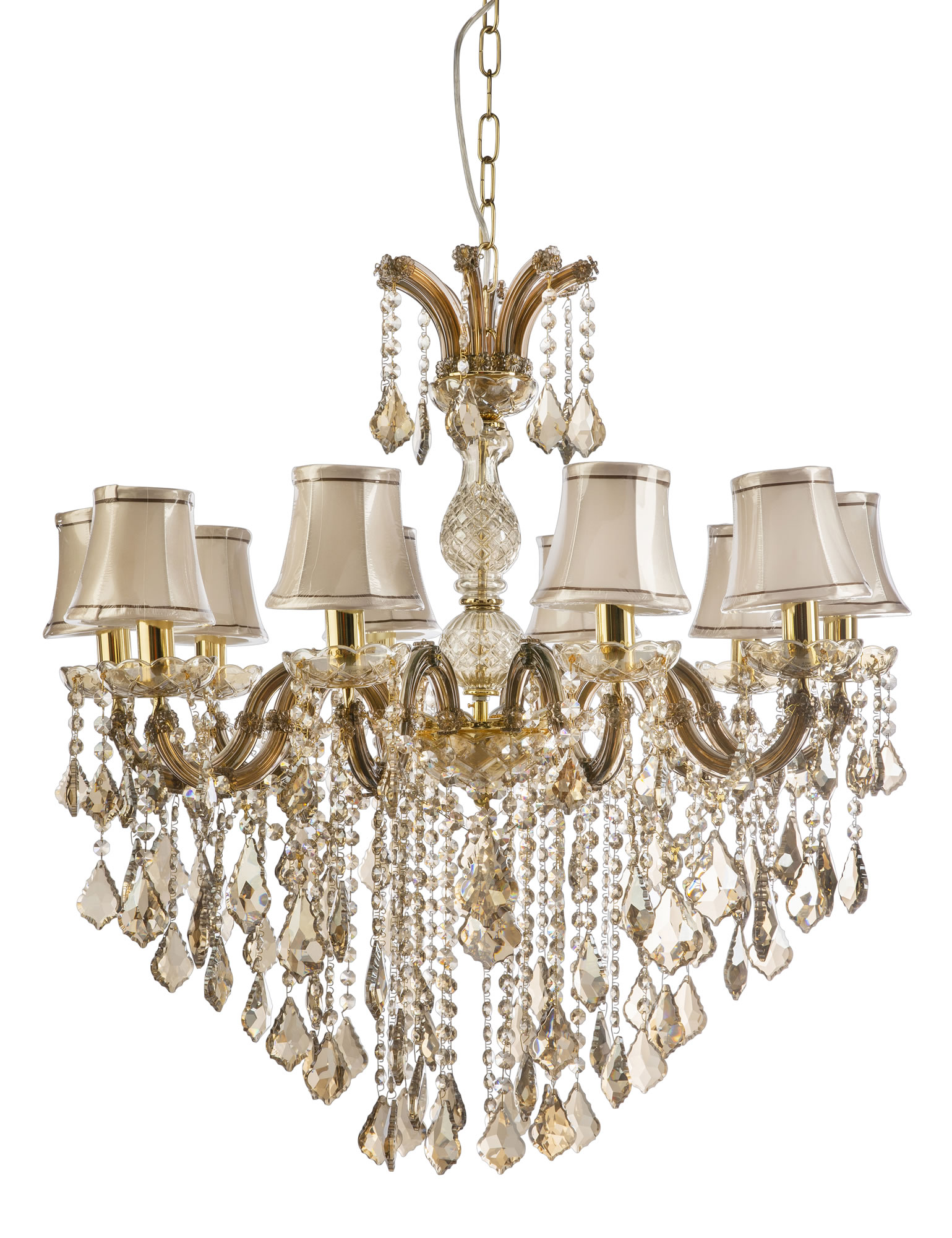 12L Amber crystal chandelier with beige shade B15, also available in 5L, 10L and 8L